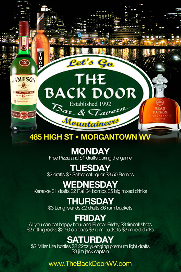 Join us as we celebrate 20 years of Mountaineer tradition with a weekend full of exciting events sponsored by Jameson Irish Whiskey and Red Bull. – NOVEMBER 2ND @TheBackDoorWV